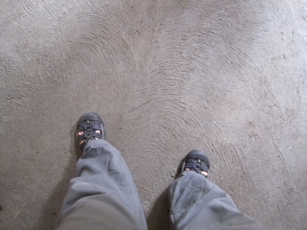 Photo: a view of someone’s feet and a concrete floor – Rev. Sarah stands on a concrete floor that she helped pour while on a service trip to Guatemala.