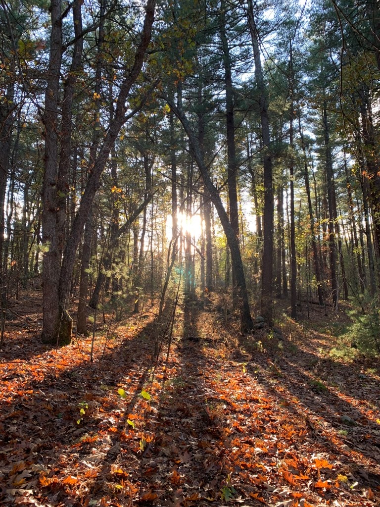 Sun shining through the trees in Weston’s beautiful woodlands.